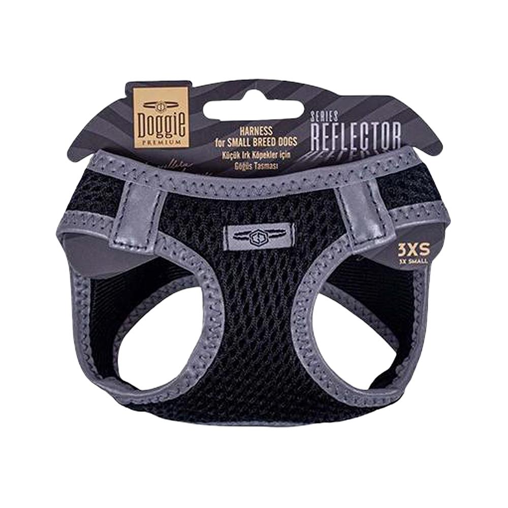 Doggie Havalı Dokuma Reflektör Serisi Küçük Irk Köpek Göğüs Tasması - Siyah (3XS, 22 - 26 cm)