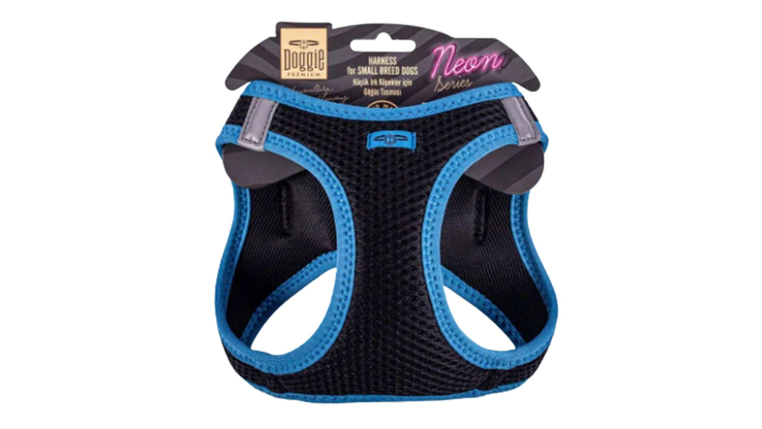 Doggie Neon Serisi Havalı Dokuma Küçük Irk Göğüs Tasması - Mavi (26-30 cm)
