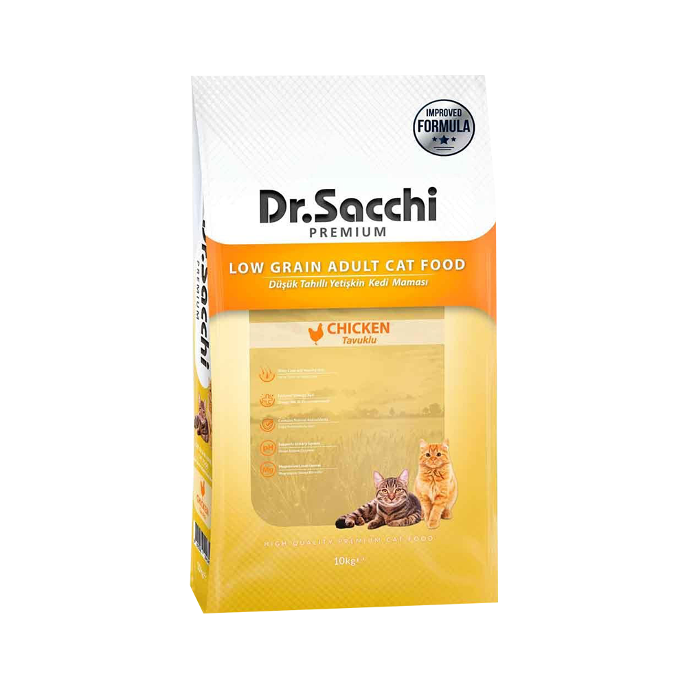 Dr.Sacchi Premium Düşük Tahıllı ve Tavuk Etli Yetişkin Kedi Maması (10 kg)