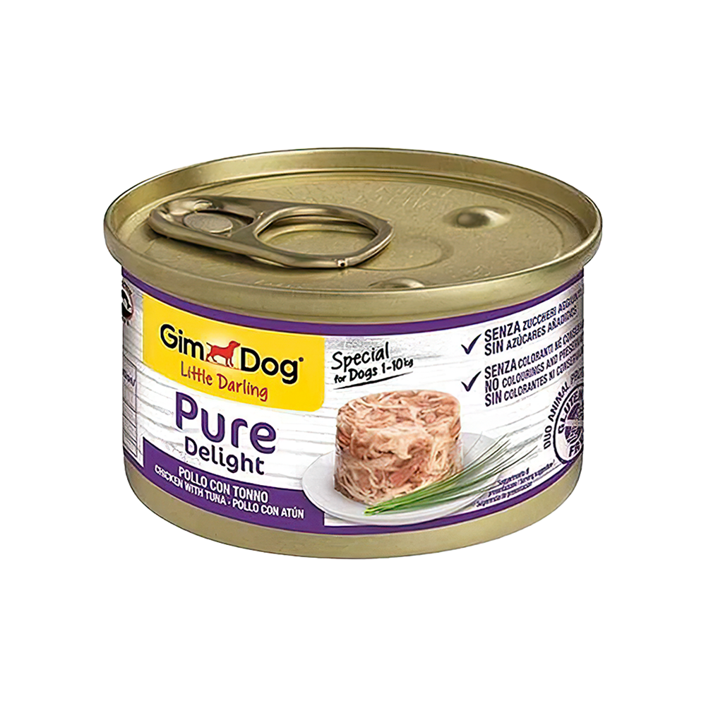 GimDog Pure Delight Parça Tavuk Etli ve Ton Balıklı Yetişkin Köpek Konserve Maması 85 g
