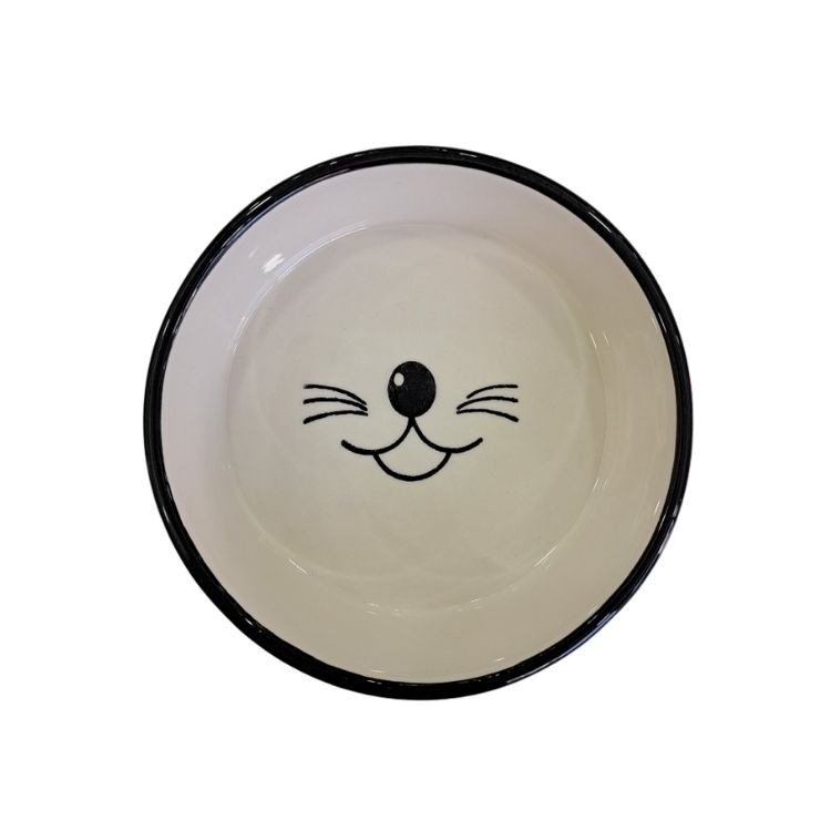 MAJO SERAMİK YUVARLAK MAMA SU KABI BIYIKLI SİYAH