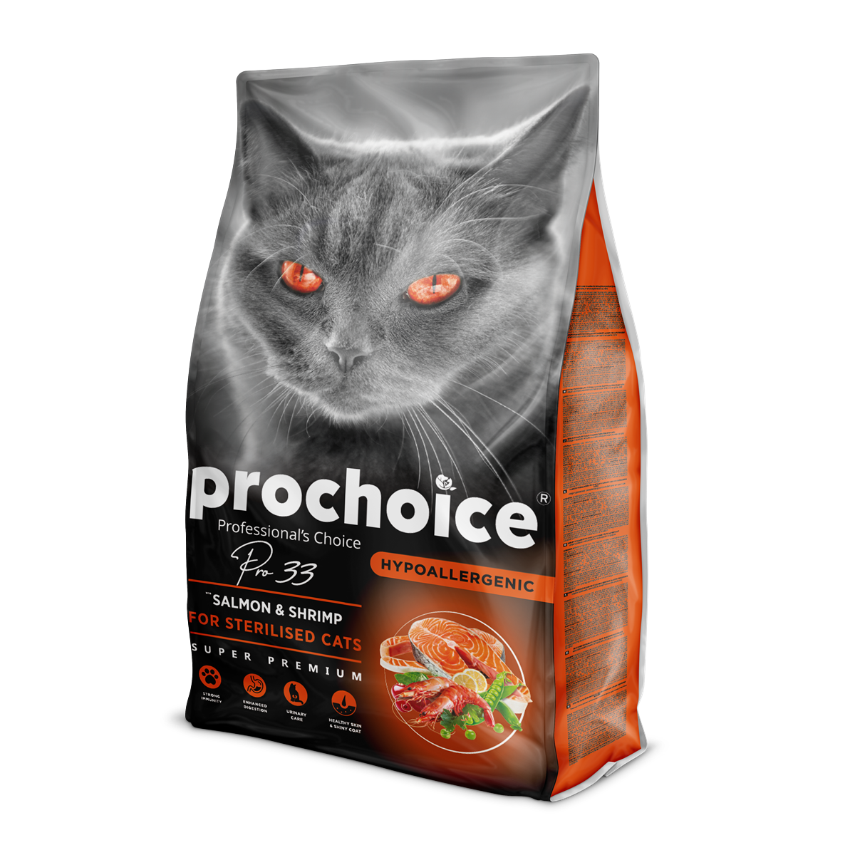 Prochoice Kısırlaştırılmış Kediler İçin Hipoalerjenik Somon Balıklı ve Karidesli Kuru Mama, kedinizin sağlıklı gelişimi için gereken tüm besin maddelerini içerirken, lezzetiyle de kedinizin kalbini kazanacak. En iyi besin kalitesini sunarak, beslenme alışkanlıklarınıza sağlık katıyor. Kediniz için bu özel mamayı tercih ederek, ona hem lezzetli hem de sağlıklı bir yaşam sunabilirsiniz.